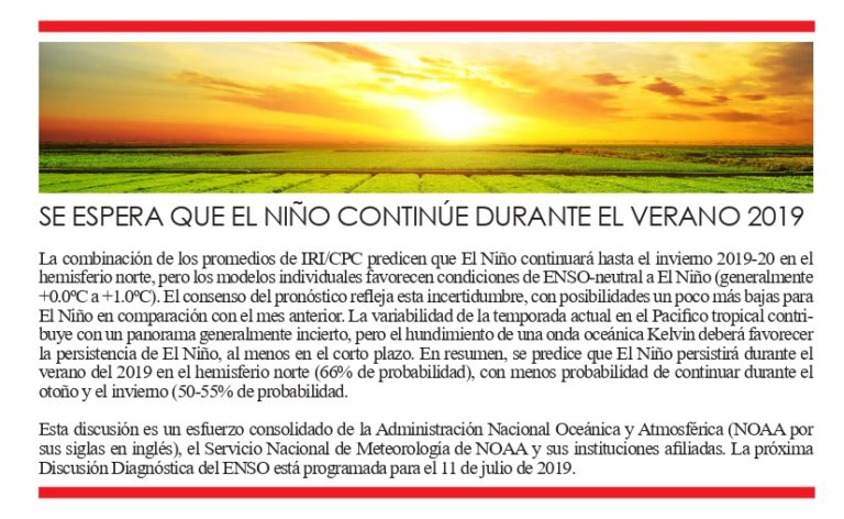 Se espera que el Niño Continúe durante el Verano 2019